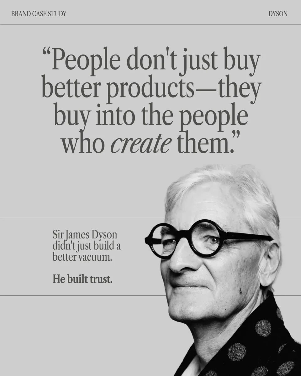 Dyson never pretended to be anything other than an engineer obsessed with making things work better. His brand grew from genuine expertise and passion, not a manufactured persona.