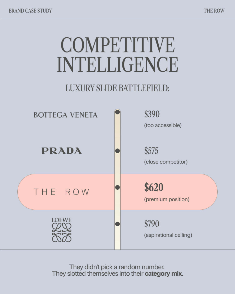 The Row positioned themselves right in the premium sweet spot; expensive enough to signal exclusivity, but not so expensive that they priced out aspirational buyers.